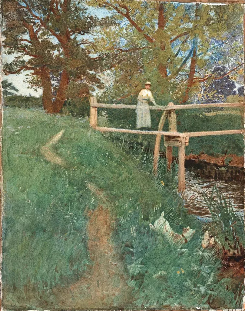 Henry Reynolds Steer (1858-1928) - Watercolour Painting - Girl On Bridge