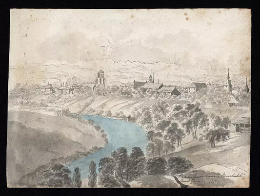 Elizabeth Campbell (1783-1861) Watercolour Painting - Baden canton d'Argovie Switzerland 1819