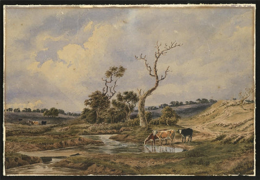 Cattle In Rural Landscape Possibly New Forest? Watercolour Painting - 19th Century