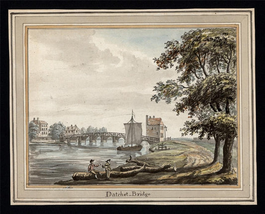 Datchet Bridge River Thames - Antique Watercolour Painting - Early 19th Century