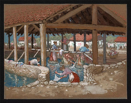 Edward Frederick Ertz (1862-1954) Watercolour Painting - Ladies Washing Laundry