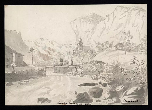 Elizabeth Campbell (1783-1861) Watercolour Painting - Lower Smadribach, Valley of Lauterbrunnen Switzerland 1820