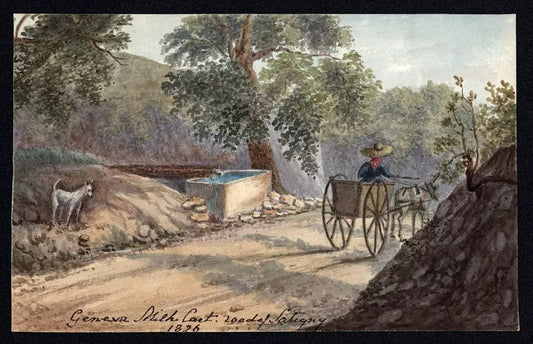 Elizabeth Campbell (1783-1861) Watercolour Painting - Geneva, milk cart, road of Satigny, Switzerland
