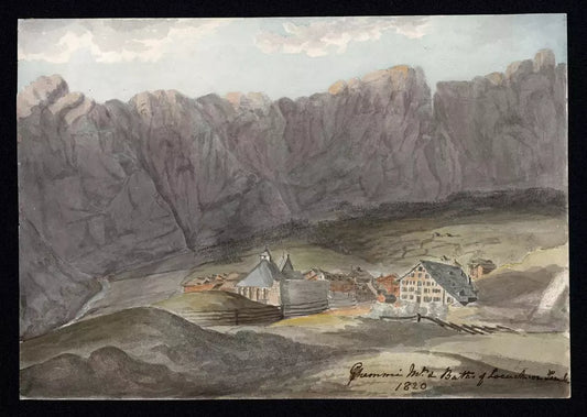 Elizabeth Campbell (1783-1861) Watercolour Painting - Mount Ghemmi, Baths of Louesch, Valais Switzerland 1820