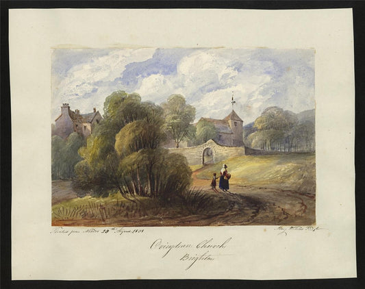 Mary Webster (1794-1883) - Watercolour Painting - Ovingdean Church Brighton 1838