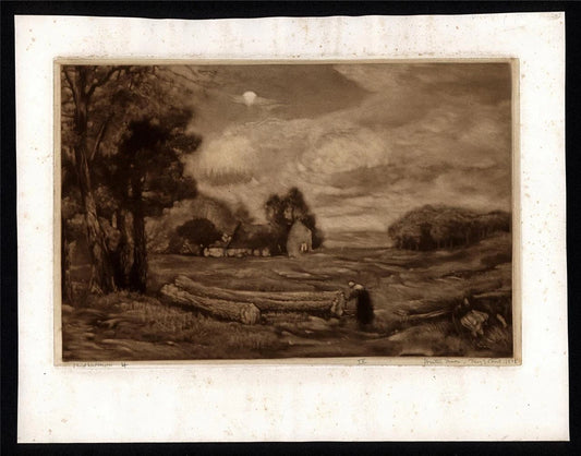 David Waterson Mezzotint 1898 Winter Moon Scotland