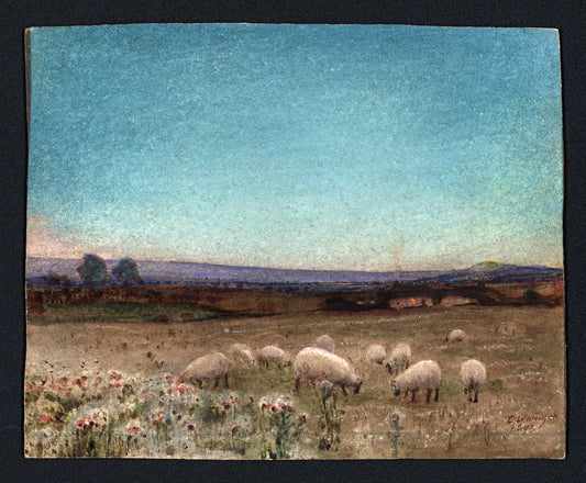 David Waterson (1870-1954) Watercolour Painting - Sheep In Rural Landscape Scotland 1893