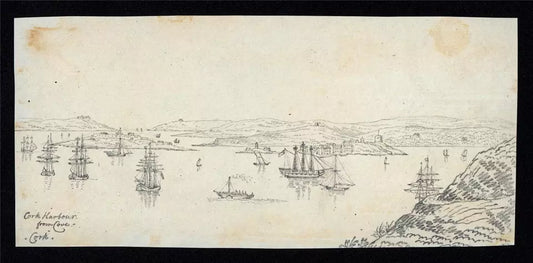 Cork Harbour Spike Island - Ireland c1823 - Pencil Drawing - Early 19th Century