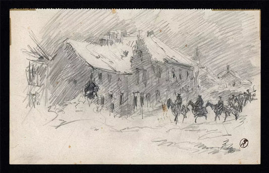 Charles Huard (1874-1965) Antique Pencil Drawing - WW1 Street Scene c1915