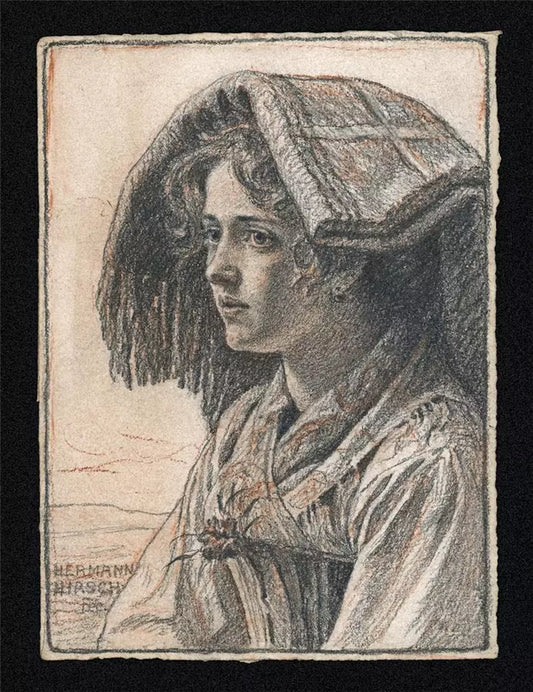Hermann Hirsch (1861-1934) - Antique Pencil Drawing - Portrait Of A Lady