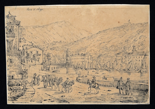 Antonio Senape (1788-1850) Pen & Ink Drawing - Porto di Nizza - Nice France