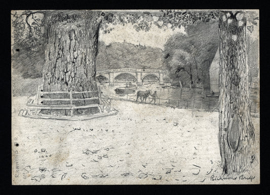 David Waterson (1870-1954) Pencil Drawing - Richmond Bridge London - River Thames 1900