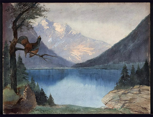 Heinrich Josef Wertheim Watercolour Painting - Grouse In Landscape Germany 1909