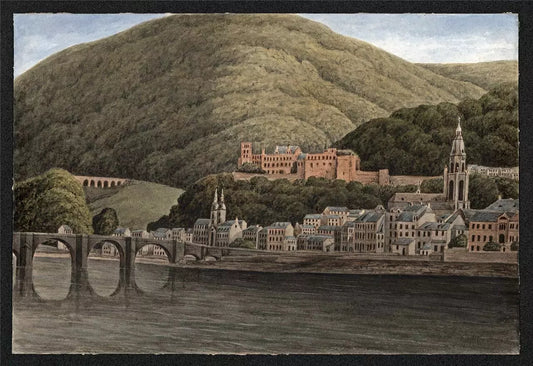 Heidelberg River Neckar - Germany Watercolour Painting 19th Century - Grand Tour