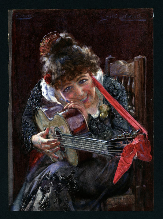 John Henry Henshall (1856-1928) Watercolour Painting Lady With Guitar 1892