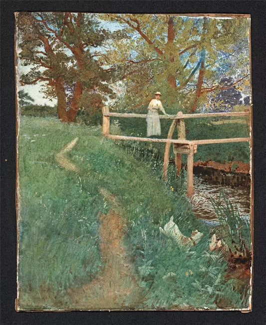 Henry Reynolds Steer (1858-1928) - Watercolour Painting - Girl On Bridge