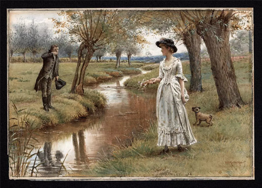 George Goodwin Kilburne (1839-1924) Watercolour Painting - The Kiss - Landscape