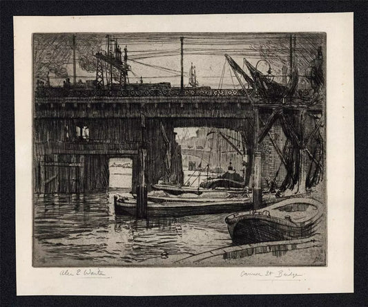 Alexander Edward Waite (1888-1958) - Pencil Signed Etching - Cannon Street Railway Bridge London