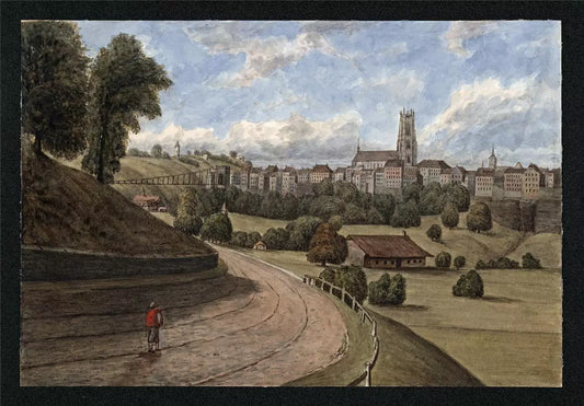 Fribourg Switzerland - Watercolour Painting - 19th Century - Grand Tour