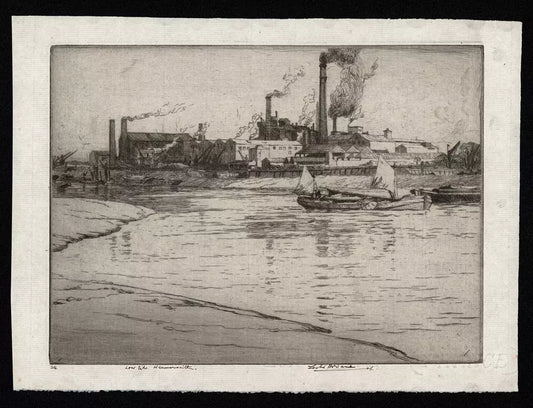 Leslie Moffat Ward (1888-1978) Signed Etching - Low Tide, Hammersmith - London