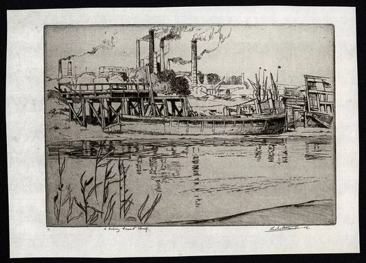 Leslie Moffat Ward (1888-1978) - Pencil Signed Etching - A Medway Cement Wharf