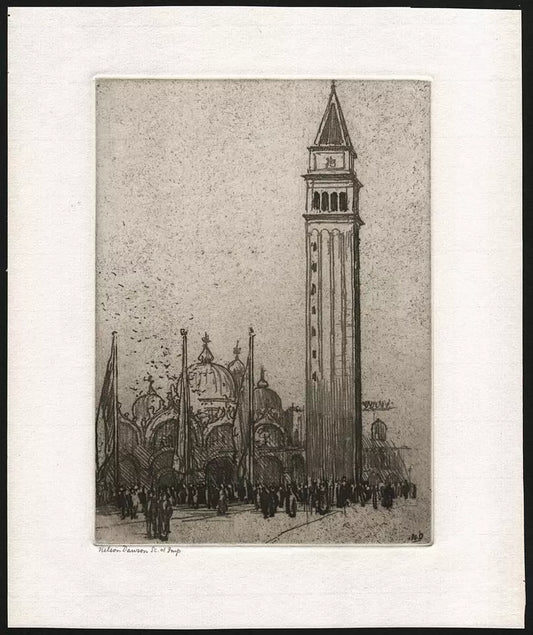 Nelson Ethelred Dawson (1859-1941) Pencil Signed Etching - St. Marks Campanile, Venice, Italy
