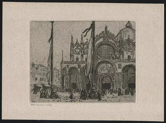 Nelson Ethelred Dawson (1859-1941) Pencil Signed Etching - Saint Mark's Basilica, Venice, Italy