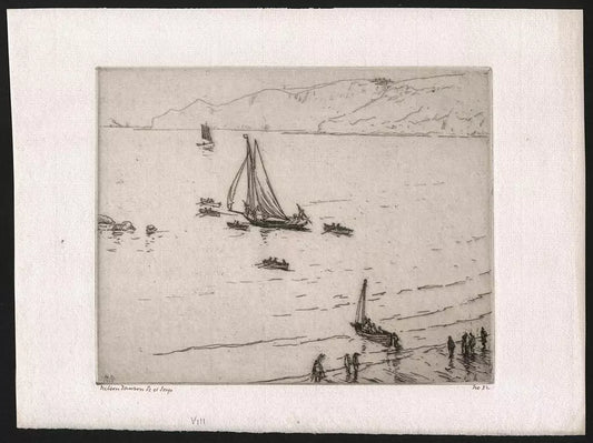 Nelson Ethelred Dawson (1859-1941) Pencil Signed Etching - Boats Off Coastline 1910