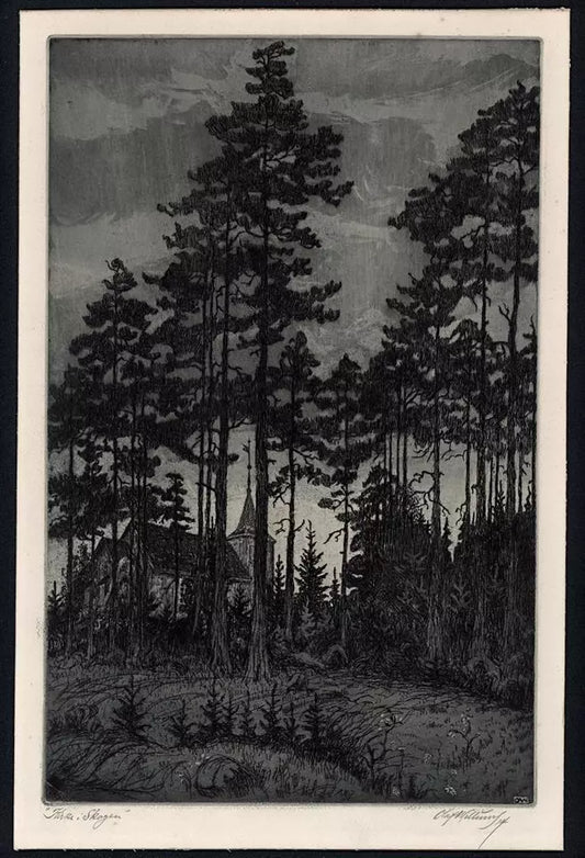 Olaf Abrahamsen Willums (1886-1967) Signed Etching - 1914 Kirke Skagen - Church In Landscape