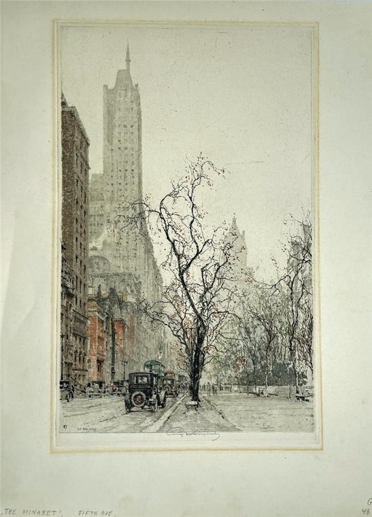 Luigi Kasimir (1881-1962) Signed Etching - The Minaret Fifth Avenue New York - USA