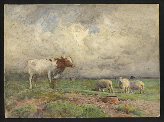 John Pedder (1850-1929) Watercolour Painting - Cows & Sheep Rural Landscape