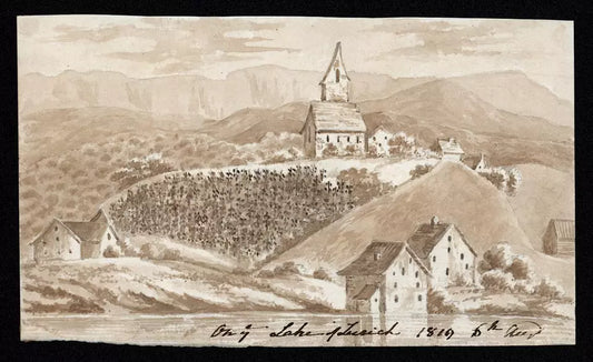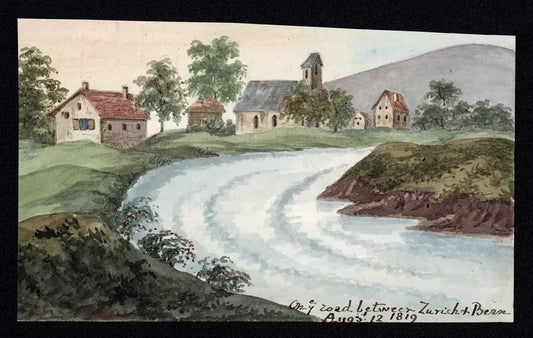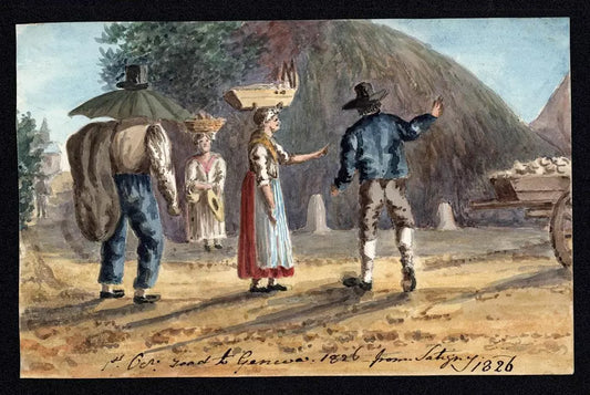 Elizabeth Campbell (1783-1861) Watercolour Painting - Tombero Vintage, Satigny, Switzerland 1826