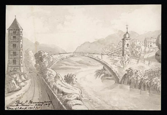 Elizabeth Campbell (1783-1861) Watercolour Painting - Ponte St. Maurice over the Rhone, Switzerland 1819