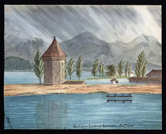 Elizabeth Campbell (1783-1861) Watercolour Painting - Part of Lake of Lucerne Switzerland 1821