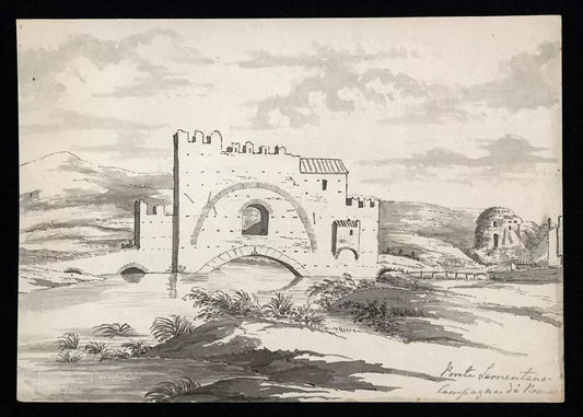 Elizabeth Campbell (1783-1861) Watercolour Painting - Ponte Lamentano, Campagna, Rome Italy